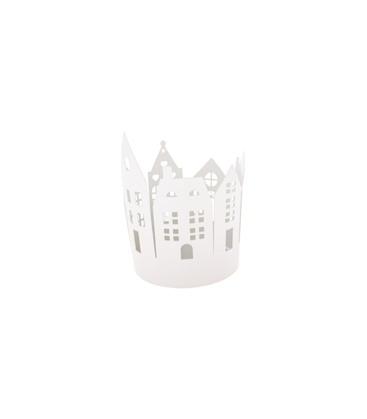 Kovový svícen na čajovou svíčku ve tvaru bílých domečků je ideálním doplňkem pro adventní období. Světlo svíčky jemně prosvítá okénky domečků, čímž vytváří hřejivou a klidnou atmosféru, která k adventnímu času neodmyslitelně patří.