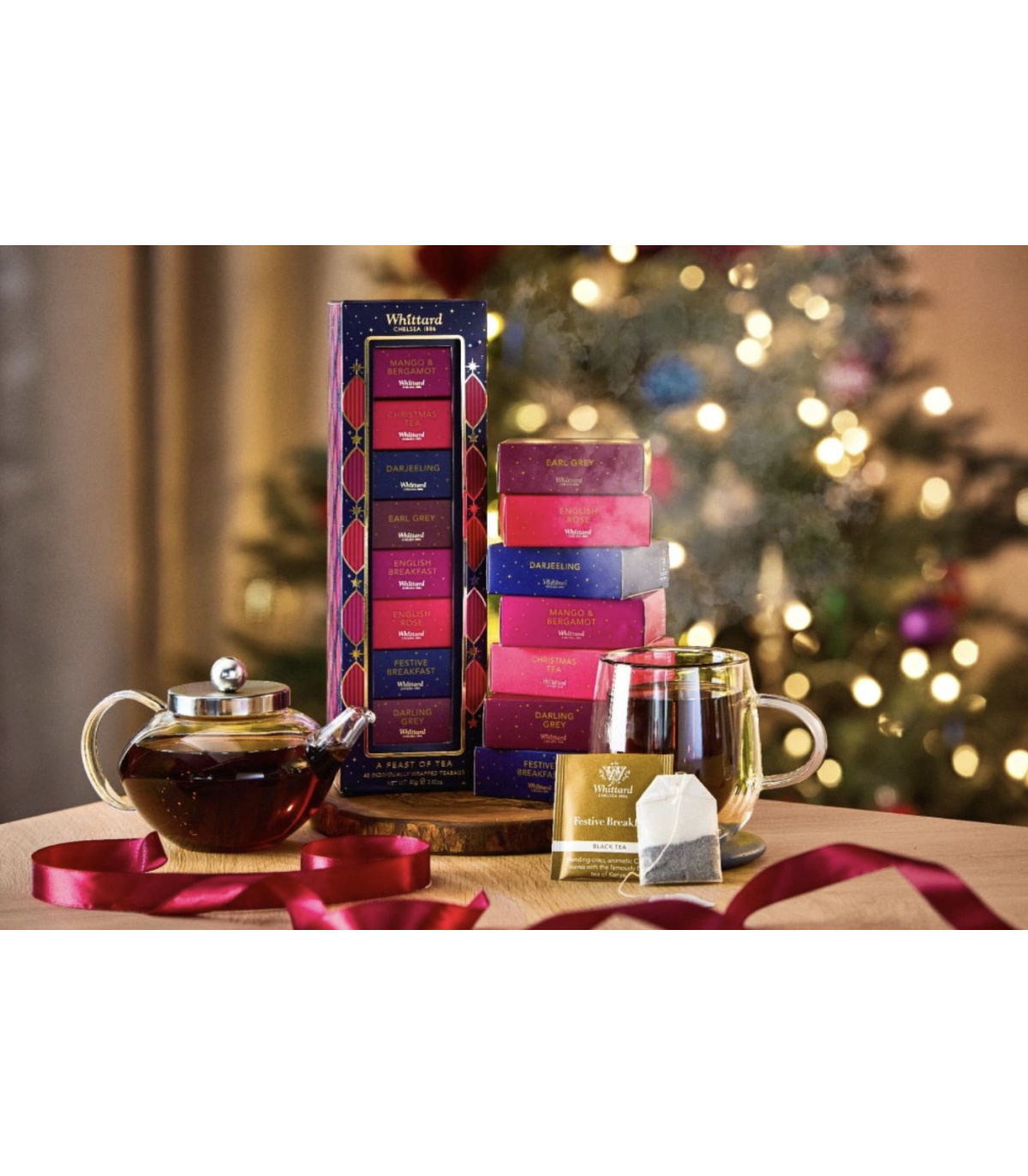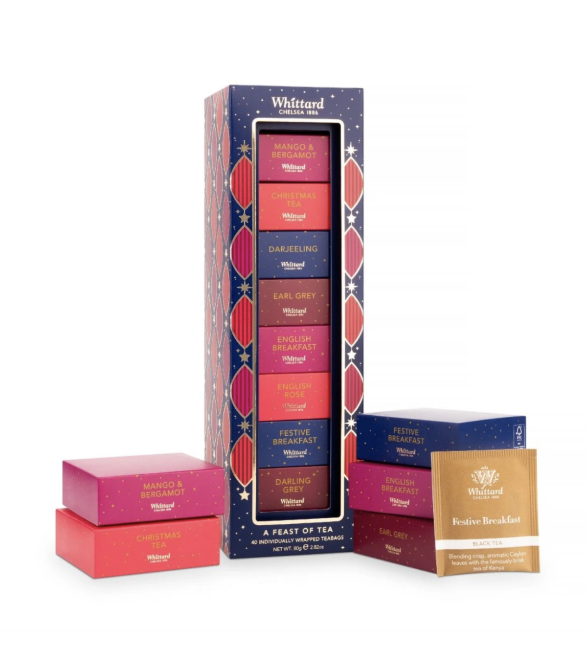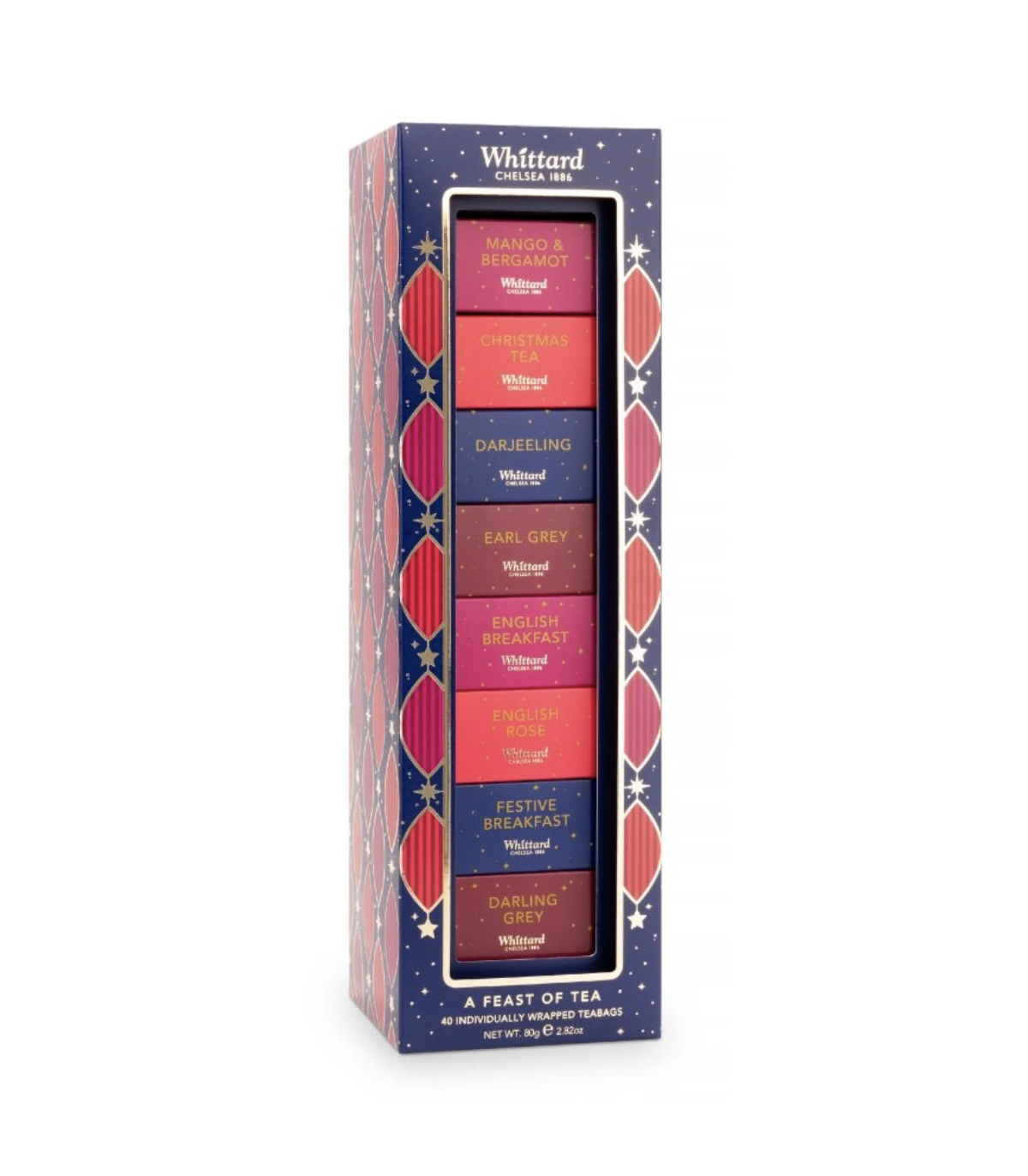 Uvnitř se ukrývá výběr lahodných čajů – klasický English Breakfast, voňavý Earl Grey, romantický English Rose, sváteční Christmas Tea nebo svěží zelený Mango & Bergamot. Každý čaj je samostatně balený, takže si je vaši blízcí mohou vychutnat kdykoli a kdekoliv.