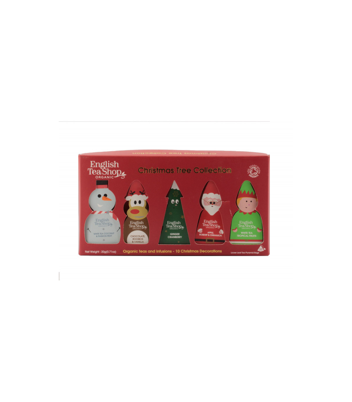 Dárková sada obsahuje vánoční figurky na stromeček od značky English Tea Shop obsahuje kvalitní čaje v bio kvalitě. Čaje jsou zabaleny v pyramidkách, které se dají zavěsit na vánoční stromeček. Tyto lahodné čaje budou netradiční ozdobou vašeho stromečku.