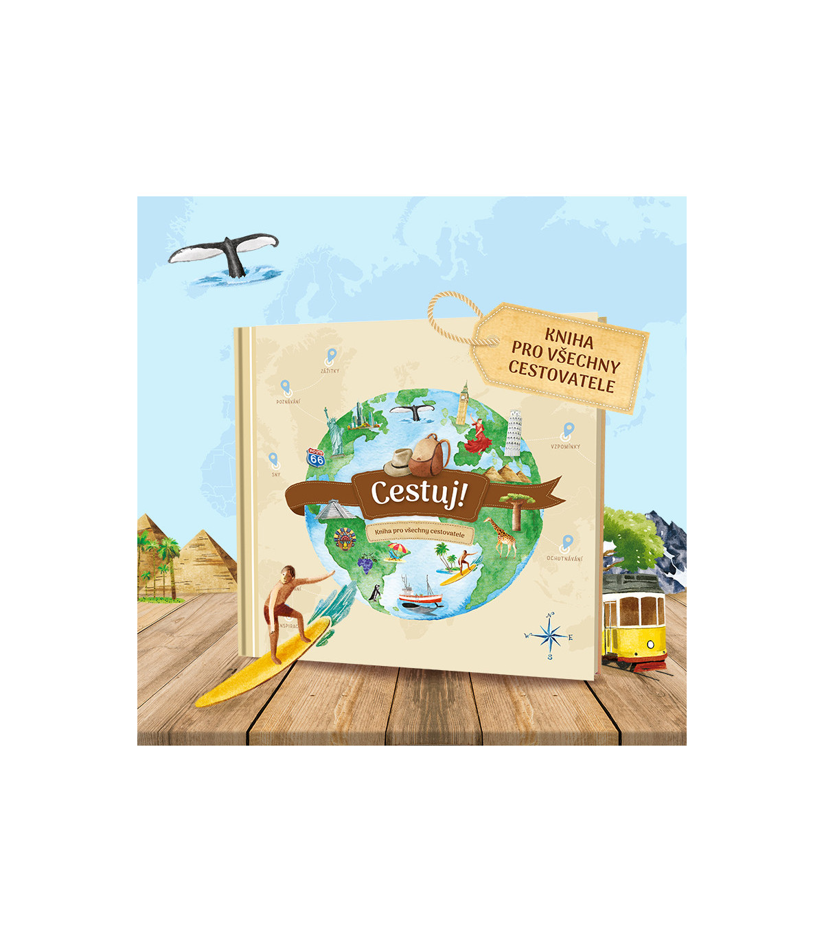 Plánujte kam se chcete podívat tento rok nebo třeba příští prázdniny. V knize si můžete sepsat seznam svých cestovatelských přání, kam byste se chtěli podívat a co byste chtěli ochutnat či vyzkoušet. Ilustrované mapy jednotlivých evropských zemí a všech světových kontinentů vám nabídnou dostatek inspirace. A až svojí cestu nebo výlet uskutečníte, tak si všechny své zážitky do knihy zapište, ať si je můžete kdykoliv připomenout. V knize je dostatek místa i na fotky, vstupenky či jiné papírové suvenýry.