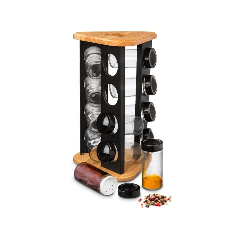Otočný dřevěný stojan na kořenky představuje originální doplněk do každé domácnosti. Do stojanu lze umístit 12 skleněných kořenek, které naplníte rozmanitým kořením. Kořenky disponují nejen praktickým sypátkem, ale také víčkem. Sypátko můžete ponechat, nebo jej vyjmout, což je praktické především u většího koření. Tento elegantní stojan na kořenky zajistí, že budete mít veškeré koření neustále po ruce a vaření bude zase o něco zábavnější. Můžete jím navíc obdarovat své blízké.