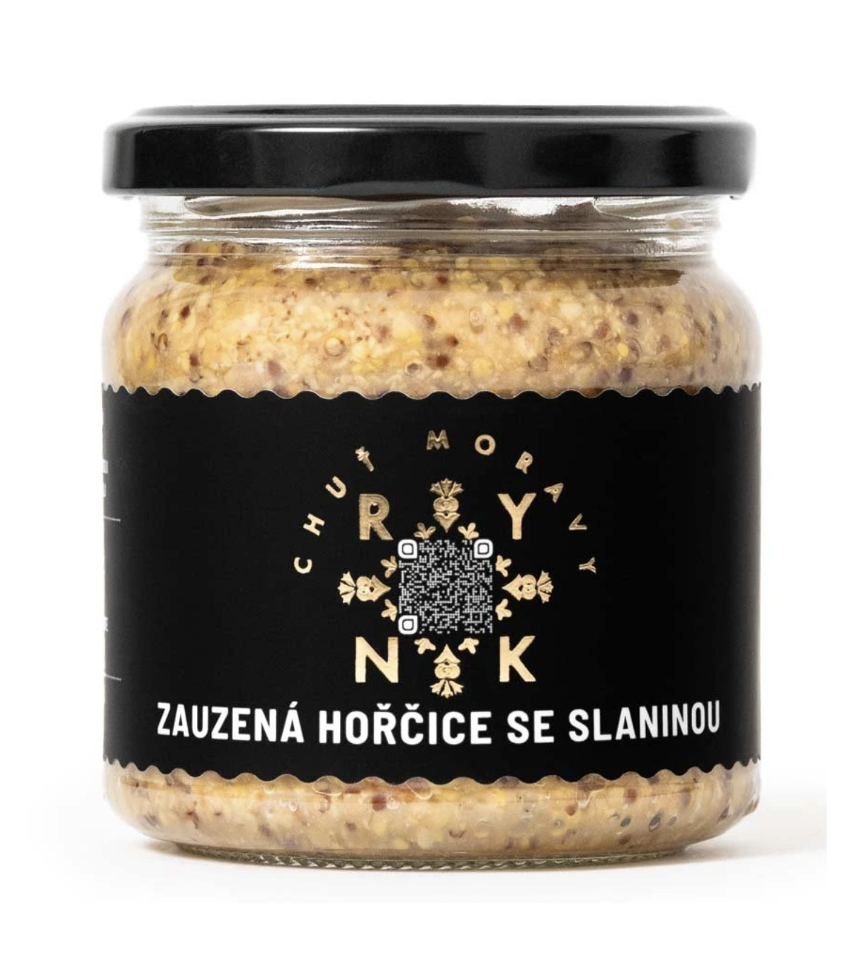 složení: voda, hořčičná semínka (20%), vinný ocet červený (víno, oxid siřičitý), cukr, slanina 8% (vepřový bok, sůl max 2,2%) - tepelně opracovaný výrobek, sů