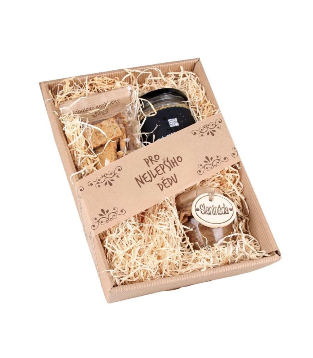 Potřebujete dárek pro dědu? Zkuste tento dárkový balíček specialit. Je v něm všechno, co muž potřebuje. Maso, něco pikantního a něco slaného k zakousnutí.
