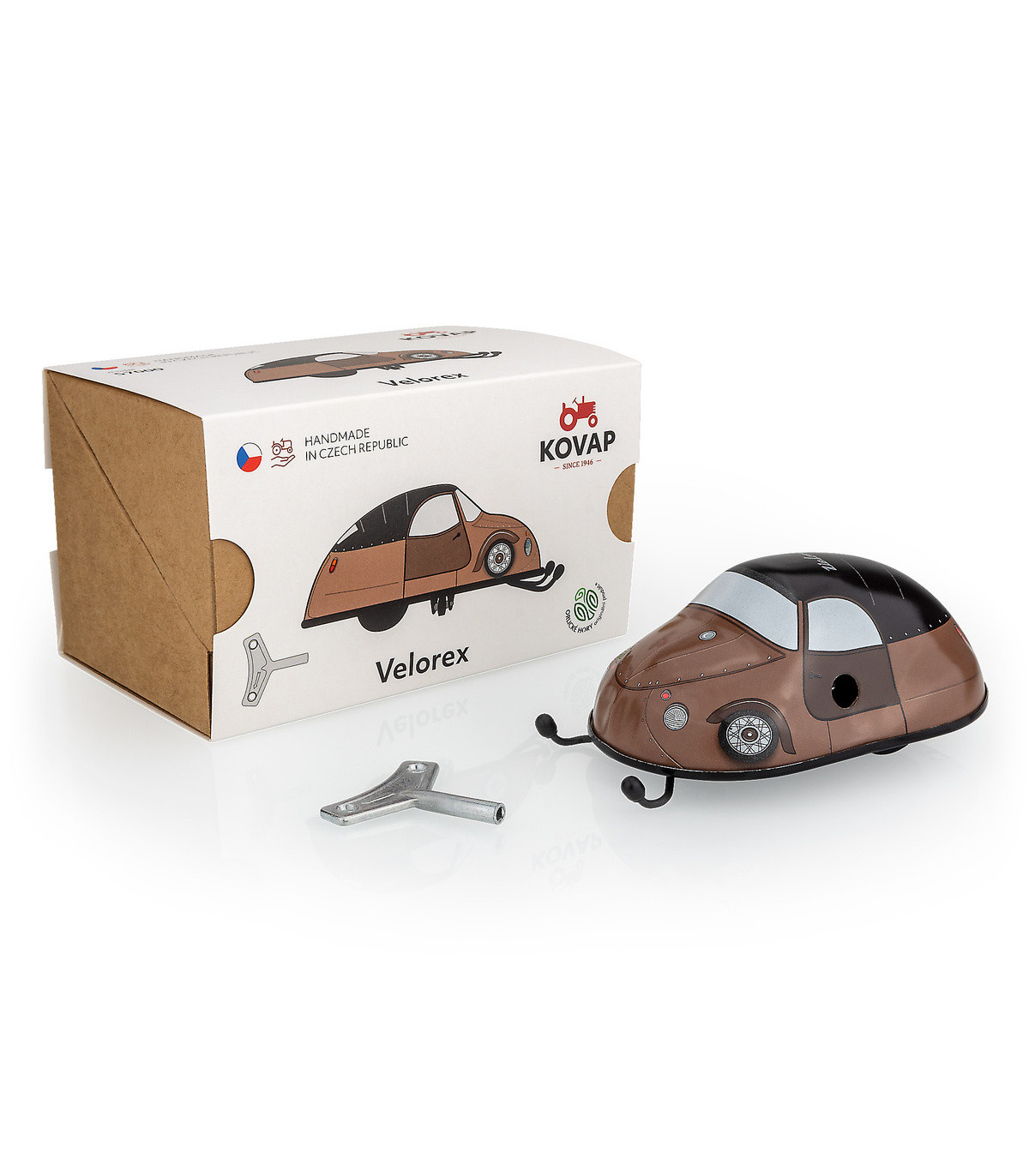 Velorex je legendární tříkolové vozítko s trubkovým rámem. Lze jej popsat jako něco mezi autem a motorkou. Hračka která potěší děti, ale i dospělé – zejména pak sběratele. Stačí jednoduše natáhnout na klíček a velorex pojede. Jednoduché, bez nutnosti dokupování baterií, a přesto s touto hračkou zažijí vaše děti mnoho zábavy.
