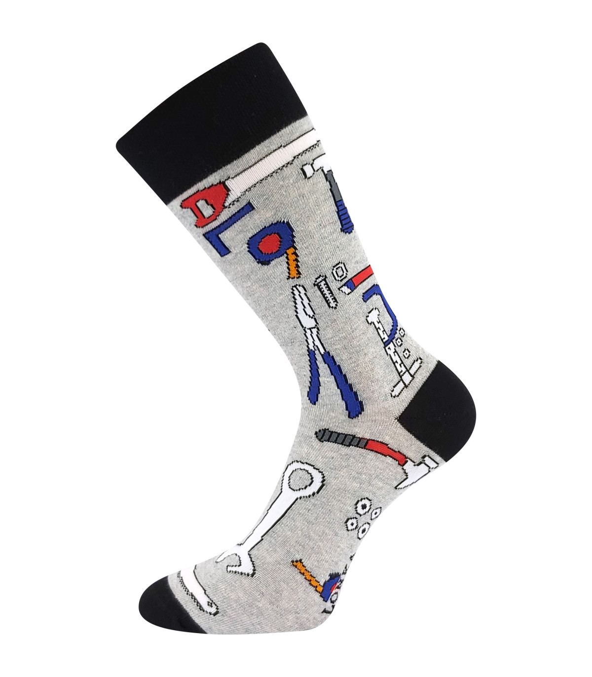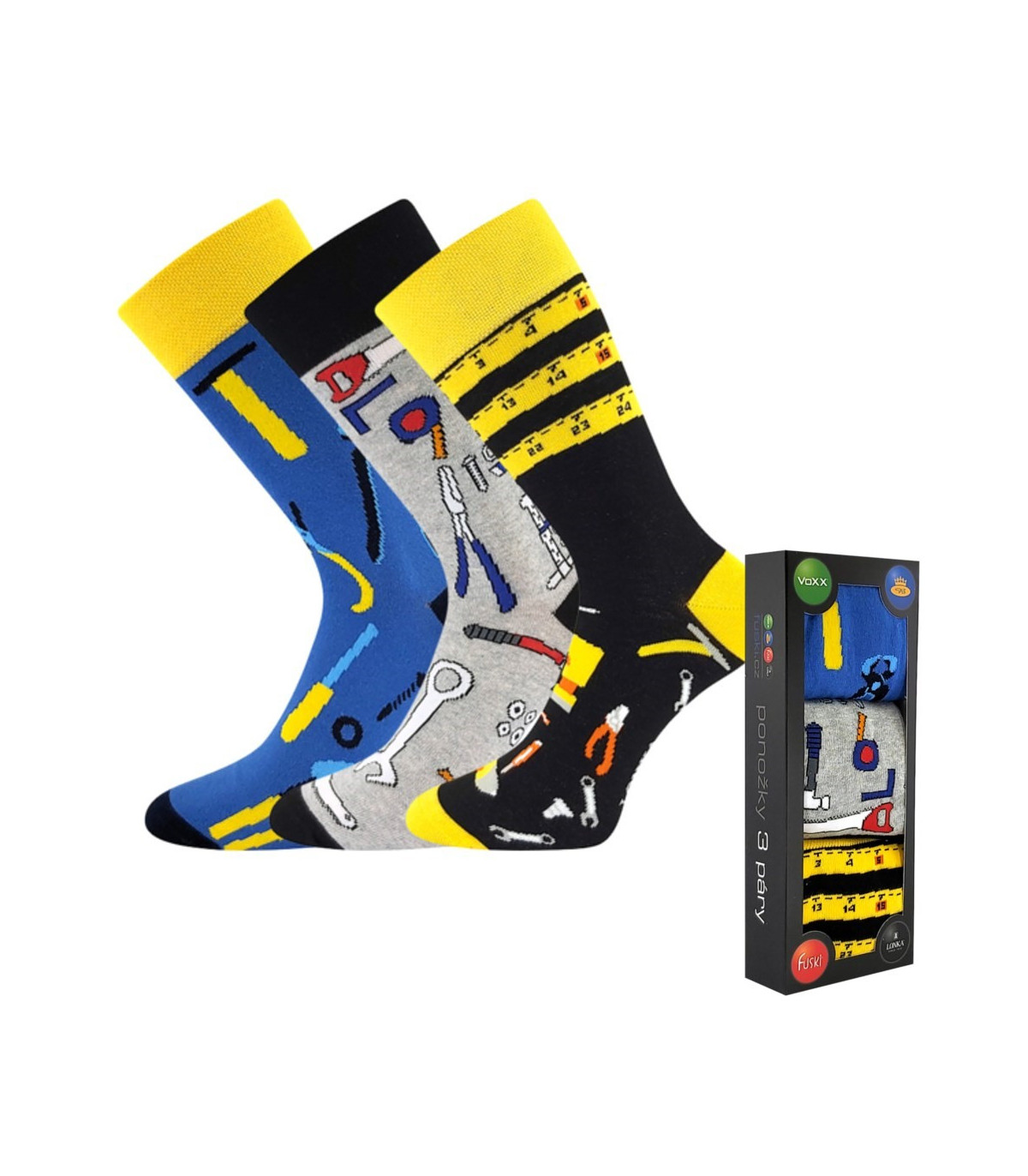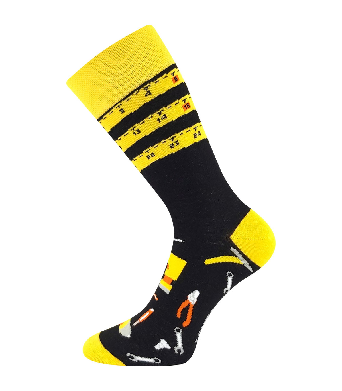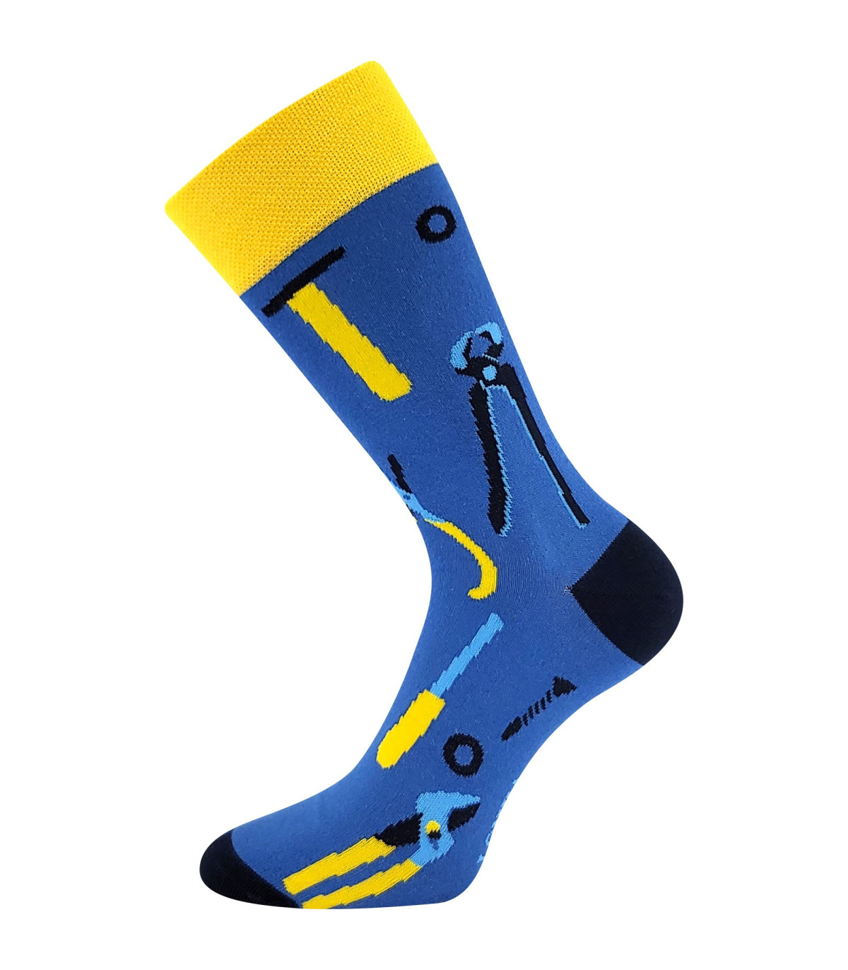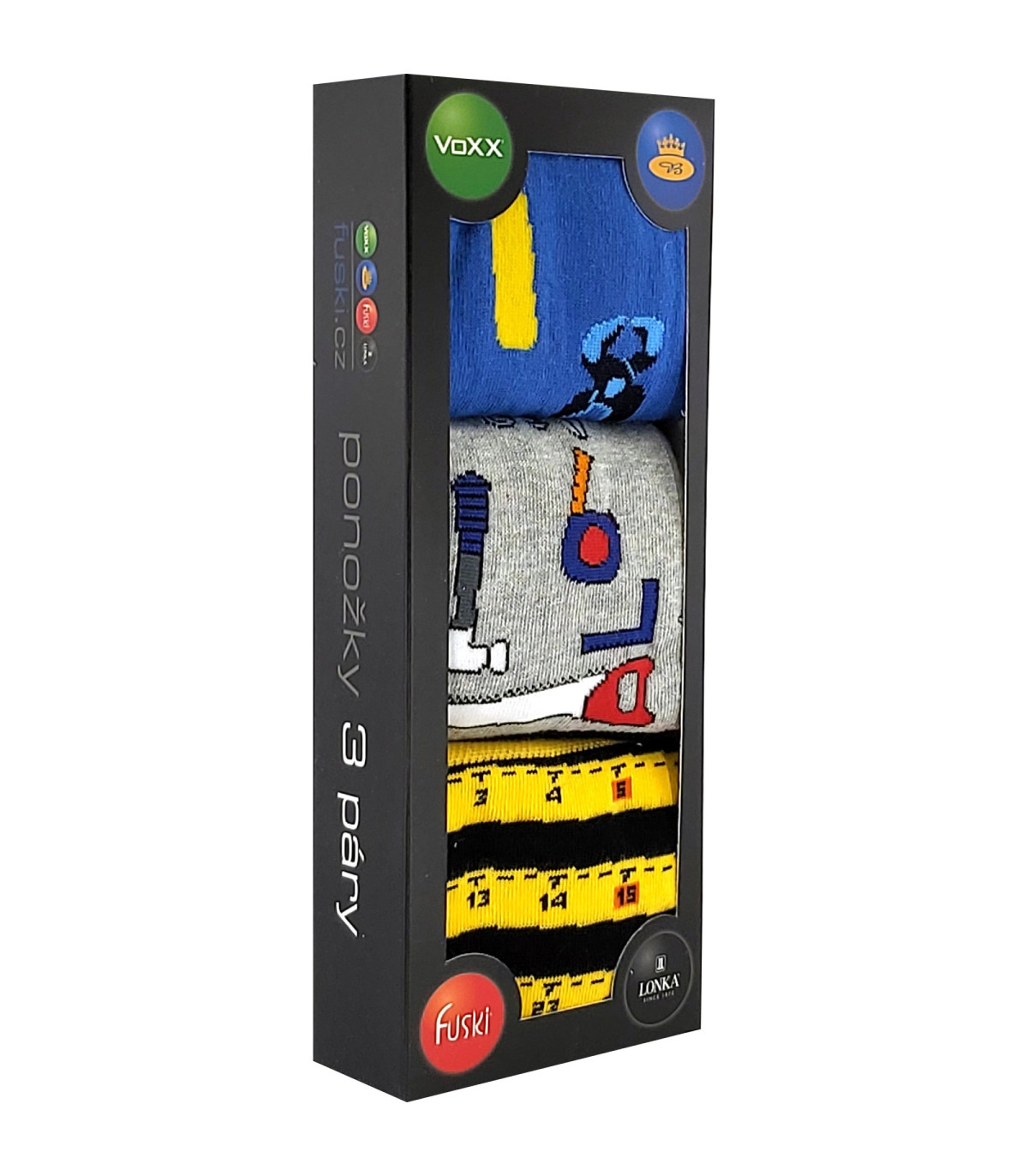 Hledáte originální dárek pro kutila, který rád tráví čas v dílně a má smysl pro humor? Tyto pánské ponožky s motivem nářadí mu udělají radost! Každý pár má jiný vzor – kladívko, šroubovák, klíč… prostě všechno, co správný kutil potřebuje mít po ruce.