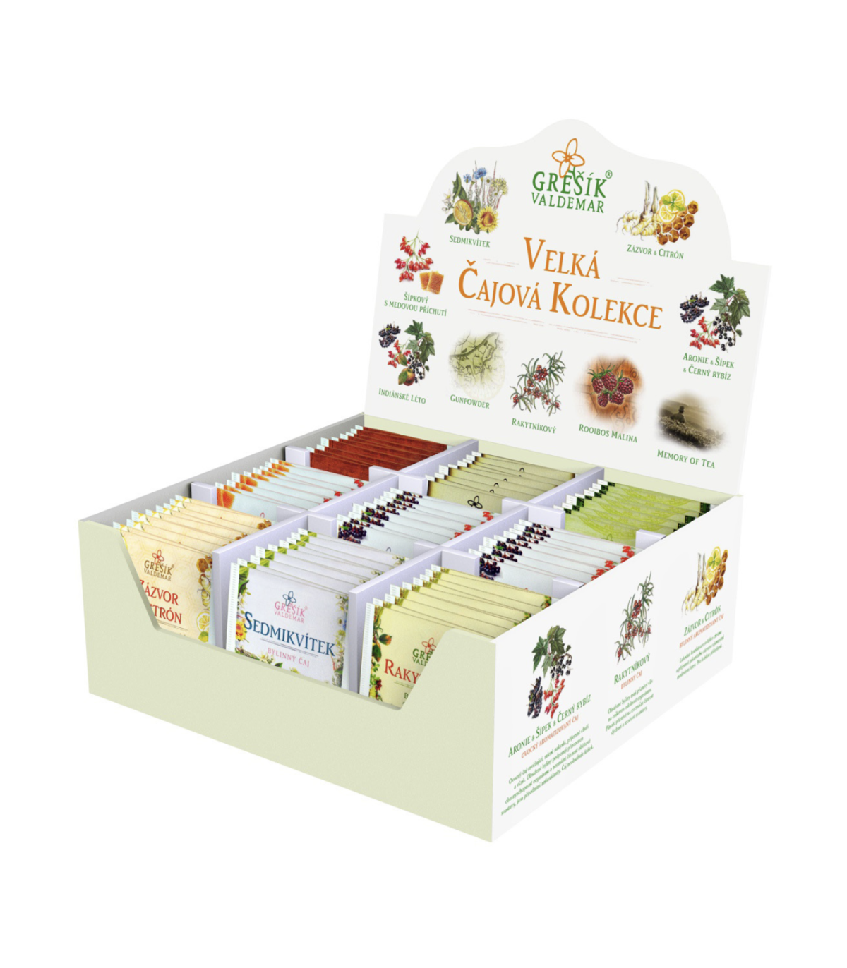 Velká čajová kolekce je perfektním společníkem pro chvíle plné pohody. Exkluzivní dárková sada obsahuje výběr devíti druhů čaje v celkem 90 sáčcích, každý s unikátním aroma a charakterem, které osloví každého milovníka čaje.