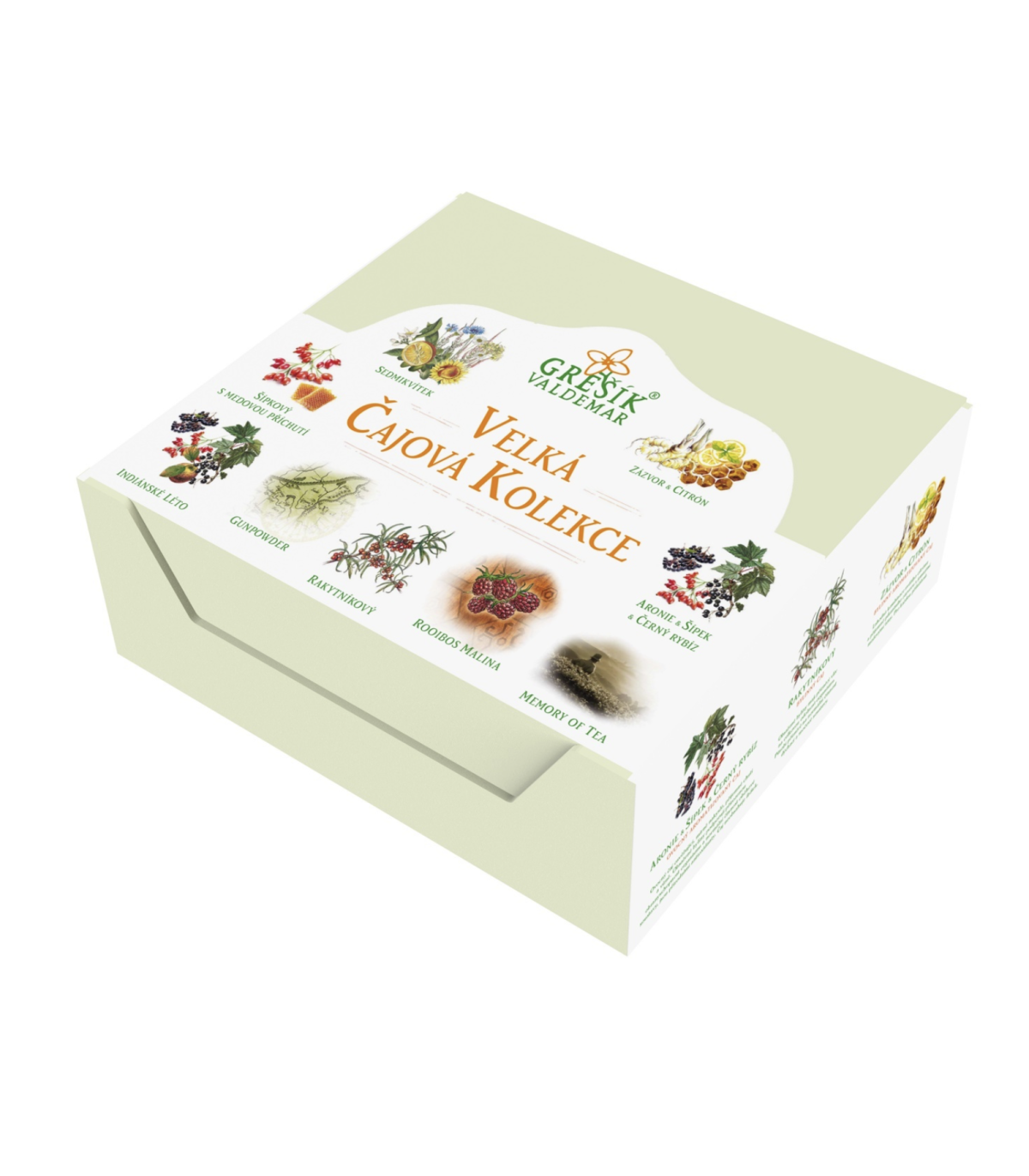 Kolekce obsahuje 9 druhů čajů: Zázvor & Citrón & Med, Sedmikvítek, Rakytníkový, Aronie & Šípek & Černý rybíz, Indiánské léto, Rooibos Malina, Šípkový čaj s medem, Memory of Tea a Gunpowder