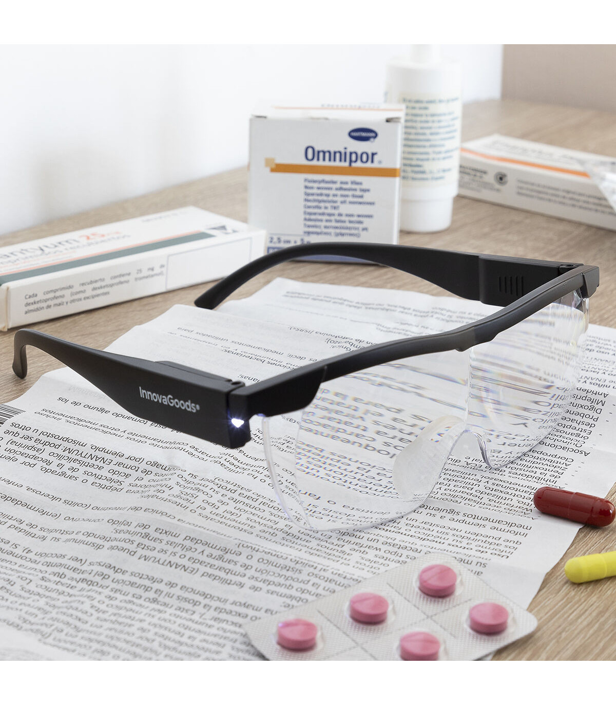 UPOZORNĚNÍ: Brýle by měly být používány pouze na krátký čas pro zvětšení a osvětlení. Nenahrazují dioptrické brýle.