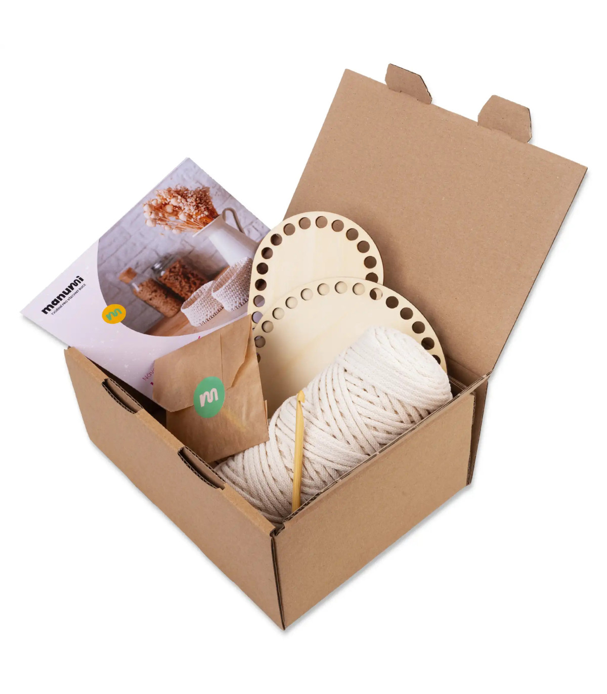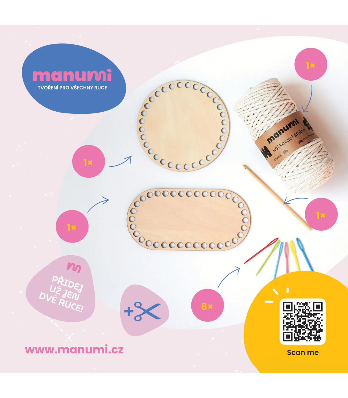 Sada obsahuje vše, co budete potřebovat na výrobu 2 jednoduchých košíků. V balení najdete šňůru, dvě dřevěná dna (kulaté a oválné), bambusový háček na háčkování, plastové velké jehly pro zakončení a podrobný návod na výrobu košíků s fotografiemi. Navíc získáte i odkaz na videonávod, ve kterém vám ukážeme celý postup krok za krokem. Pro výrobu budete dále potřebovat pouze nůžky, trochu trpělivosti a chuť tvořit.