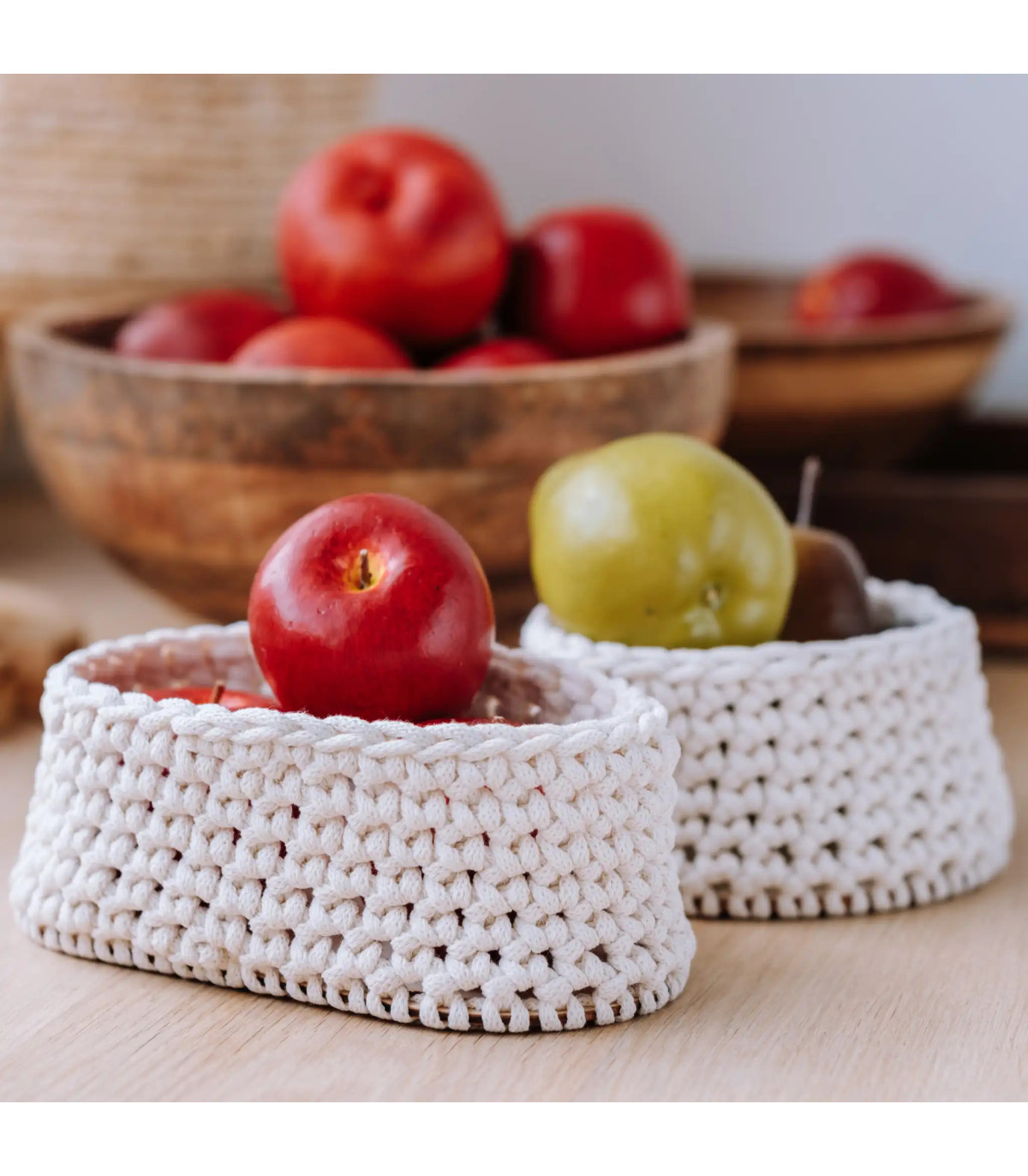 Kreativní sada na výrobu háčkovaných košíků je skvělým začátkem pro každého, kdo si chce osvojit háčkování! Hodí se pro úplné začátečníky, i pro ty, kteří háčkovat umí a chtějí udělat tvořivou chvilku, ale nechtějí zdlouhavě vybírat všechny potřeby. Háčkovaný košík z této sady se díky své neutrální barvě hodí do každého interiéru a výsledný výrobek tak bude nejen hezky vypadat, ale také bude praktickým funkčním doplňkem.