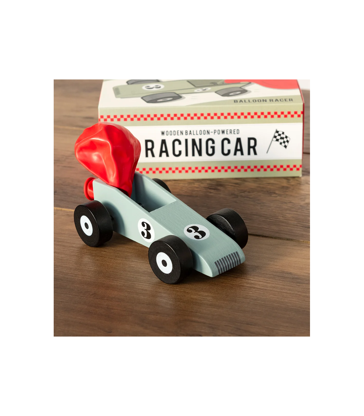 Dřevěné závodní autíčko se rozjede díky balónku a ukáže jim, jak funguje síla vzduchu.