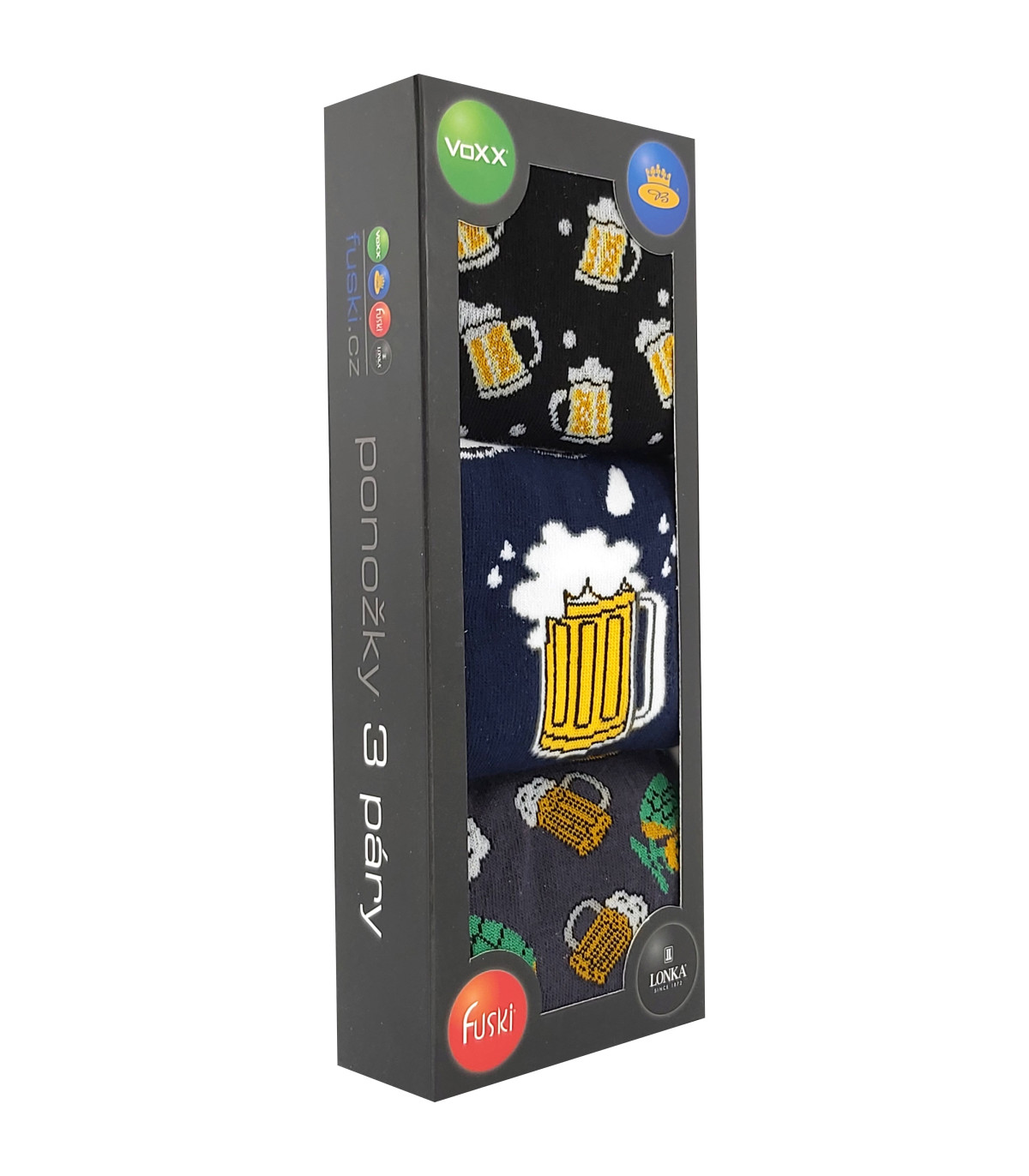 Ponožky jsou zabalené v elegantní dárkové krabičce, takže dárek je hned připravený k předání. Vyrobené jsou z kvalitní bavlny, jsou měkké, prodyšné a příjemně pružné – ideální na každodenní nošení i pohodové večery u piva.