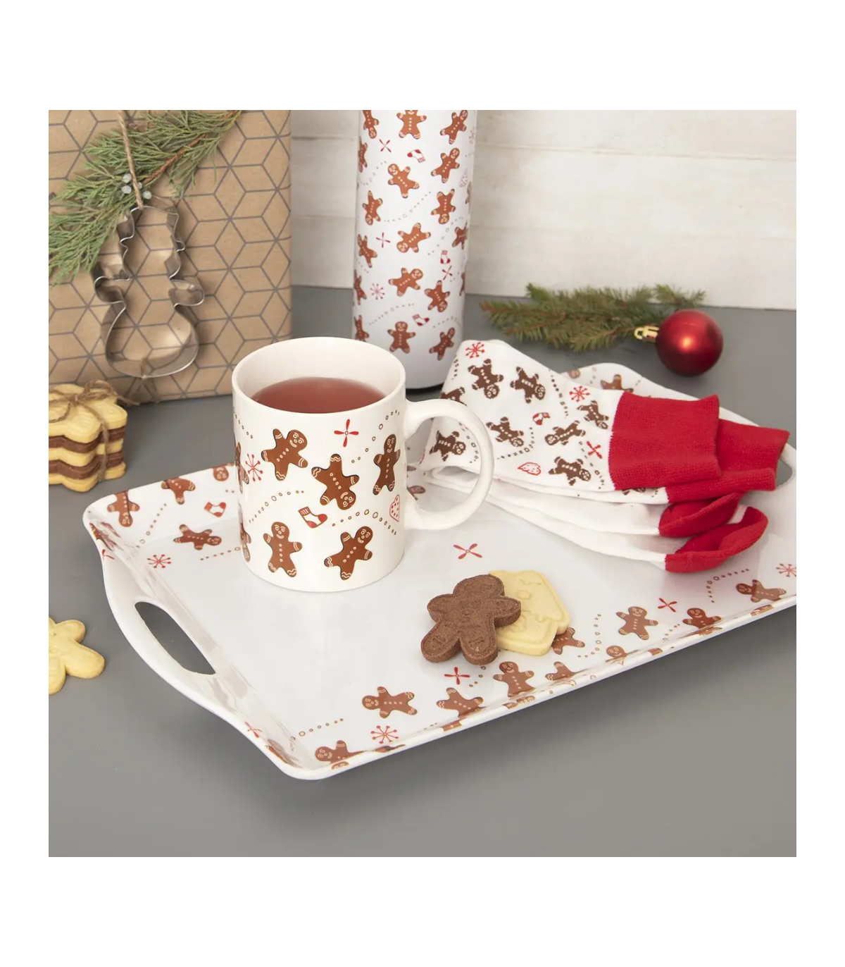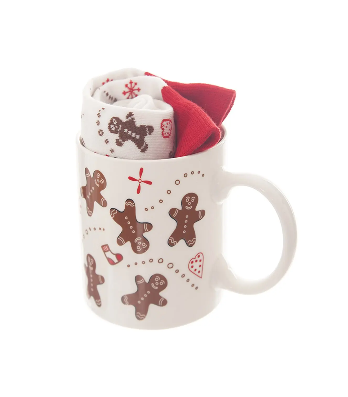 Hledáte originální dárek, který zahřeje nejen na duši? Tento roztomilý set vás okouzlí svou vánoční atmosférou. Stylový keramický hrnek s motivem perníčků o objemu je ideální na oblíbené horké nápoje, jako jsou čaj, kakao nebo káva. Spolu s hrnkem dostanete i měkké dámské ponožky v ladícím designu, které udrží nohy pěkně v teple.